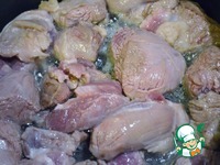 Добавляем подсолнечное масло и обжариваем мясо до румяной корочки по 5 минут с каждой стороны. |