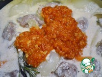 Через 10 минут добавляем аджику. Я добавляла свою аджику, если у Вас такой нет, то можно добавить просто томатную пасту. |