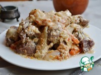 Закрываем мультиварку и доводим до готовности. Мясо с овощами выкладываем на тарелку, а в оставшийся соус добавляем муку, хорошо размешиваем. Поливаем мясо полученным соусом. |