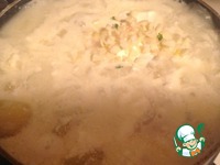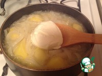Это суп или соус, или второе блюдо - как приготовите, так и будет. В Осетии он очень популярен. Можно сделать его очень густым, чтобы не наливать, а выкладывать на тарелку. Если же вам хочется первого, то просто немного измените пропорции, и получите очень питательный и полезный суп. Ну, а вкус, если попробуете раз - не забудете уже никогда. Также вы можете регулировать жирность супа. Кто любит пожирнее - варите с кожицей, выбирайте жирную сметану. Я сегодня варю грудки без кожицы и одну ножку (облегченный вариант). Вообще-то, в традиционном варианте варят всю курицу. Название супа - сУран (с ударением на букву "у"). На самом деле он варится быстро, около получаса, остальное время занимает очистка и подготовка ингредиентов.
