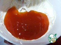 Желатин нагреть, но не кипятить. Влить тонкой струйкой в крем. При этом взбивая до пышной массы |