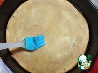 В разъемную форму выложить нижний корж и пропитать его сахарным сиропом (если не любите влажные торты, можно не пропитывать) |