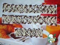 На бумажной ленте нарисовала узоры растопленным белым и темным шоколадом. |