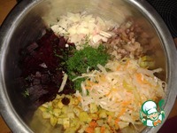 Описание: Недавно открыла для себя этот рецепт и была приятно удивлена пикантным и непривычным вкусом такого, традиционного для русской кухни, блюда. Готовился мой винегрет из того, что есть в холодильнике)) Зелёного горошка в этот раз не оказалось))