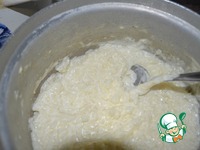 Соединить вместе сваренный рис, желтки с сахаром и маслом и белки |