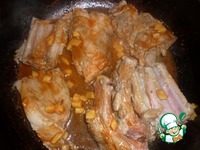 Ставим сковороду на огонь. Добавляем 2 ст. л. растительного масла. Выкладываем ребра на сковороду. |