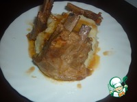 Ребрышки готовы, достаем. На гарнир можете подать все, что угодно. У нас на гарнир пюре. Пюре поливаем соусом и выкладываем ребрышки. Приятного аппетита. |