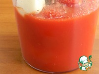 Томаты в собственном соку измельчить в блендере с чесноком, добавив сахар и перец. |