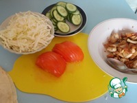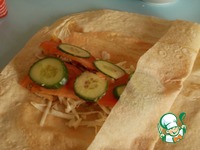 Следом помидоры и огурцы. Осталось красиво завернуть начинку в лаваш. |
