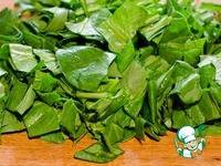 Пока мясо тушится, помыть шпинат и крупно его нарезать. Если он мелкий, то резать не надо. |