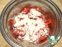 Филе хорошо перемешиваю с мукой и оливковым маслом. |