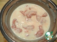 В йогурт добавляю куриное филе, опять хорошо перемешиваю массу, оставляю филе мариноваться примерно на 2-3 часа. |