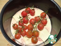 Сверху на филе укладываю ломтики моцареллы. |
