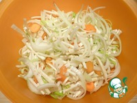Все овощи перекладываю в миску, солю, перемешиваю. |