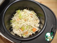В чашу мультиварки выкладываю половину нарезанных овощей. |