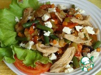 Когда грудка поджарилась (через 10 минут), не размораживая, высыпаем овощи к грудке, солим/перчим, закрываем крышкой и ставим режим "Тушение" на 15 минут. И идем накрывать на стол. |