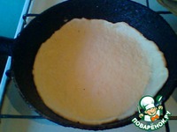 Приготавливаем по рецепту тесто на кефире, раскатываем и укладываем его в сковороду. Если вы планируете больше человек, можно тесто положить на противень. |