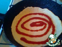 Так как из взрослых только я и муж, пиццу я делаю на двоих. Все выпекаю в чугунной сковороде, которую надо смазать кусочком маргарина. |