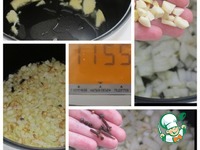 Установите на мультиварке режим "Малый объем". Разогрейте топленое масло в чаше и обжарьте мелко нарезанный лук, измельченный чеснок, гвоздику, черный перец и кардамон до золотистого цвета. |