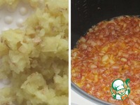 Имбирь натереть на мелкой терке, добавить его к луку с томатной пастой. Хорошо перемешать. |