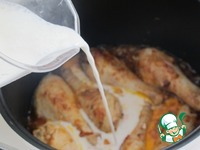 Залейте кусочки цыпленка. Тушите, периодически помешивая, около 30 минут. |