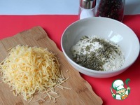 Сыр натереть на мелкой терке. Муку, сыр, орегано, чеснок смешать в миске. Поперчить, посолить. |