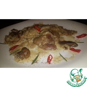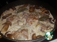 Описание: Классический фрикасе тушат в мясном или курином бульоне, а я решила, что в сухом вине будет тоже очень интересно, и не ошиблась.