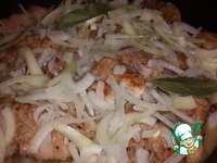 Лук почистить, нарезать полукольцами. Приготовить специи и вино. Когда кролик обжарится, сверху распределяем лук, специи, заливаем вином, накрываем крышкой и тушим примерно 30 минут. |