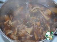Сухие грибы замочить в половине стакана кипятка и поставить кипятить на пять минут. Отставить настояться. |