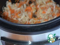 Чрез пару минут туда же добавить морковь, натертую на терке, и квашеную капусту. Потушить все овощи не менее 7 минут. |