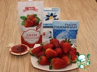 Подготовим остальные ингредиенты. Клубнику помыть, очистить от зелени, обсушить. Сливки взбить с сахарной пудрой (3 ст. л.)Для смазывания коржей будем использовать джем "Махеев" клубничный. |
