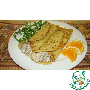 Описание: Невероятно вкусные блинчики с начинкой из грибов и курицы. В рецепт этих замечательных блинов входить сок, цедра апельсина и тимьян. Казалось бы, не совместимые между собой продукты, прекрасно сочетаются, создавая не обычный и удивительный вкус. В итоге получается очень красочное и ароматное блюдо. Это замечательное блюдо придется по вкусу, как взрослым, так и детям.