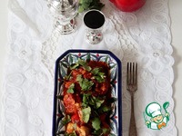 Готовое блюдо посыпаем свежей кинзой и подаем на стол. Его можно есть как холодным, так и горячим. |