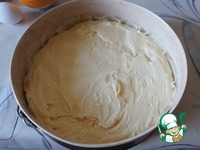 Большую разъемную форму смазать жиром, застелить пекарской бумагой, выложить тесто и разровнять. Выпекать 15 минут при 175-200*С. |