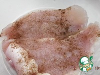 Рыбу солим, перчим и сбрызгиваем лимонным соком |