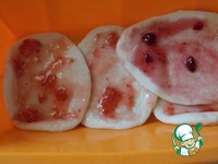 Из теста формируем небольшие шарики, оставить один размером как 3, прикрываем и даем им расстояться. Затем раскатываем в лепешки. |