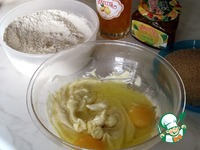 В другой миске вилкой смешать мед и размягченное сливочное масло до мягкой кремообразной массы. Добавить яйца, перемешать до однородного состояния. |