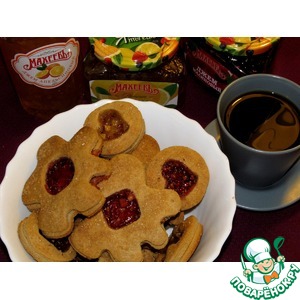 Описание: Рассыпчатое, нежное и очень вкусное песочное печенье с пряностями, миндалем и джемом. Рецепт моего собственного авторского сочинения. Тесто получается плотным, но не упругим и раскатывать его легко. Хорошо держит форму, так что можно вырезать из него фигурное печенье любой сложности. Тесто в меру сладкое, основную сладость печенью придает джем.