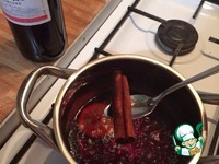 Выливаем вино у кастрюлю, даем немного подогреться, оно не должно прям кипеть и бурлить, все делаем на медленном огне, каркаде, заранее приготовленный, добавляем к вину, вводим мёд, немного сахара, выдавливаем чуть сока лимона и апельсина по ч. л. и кидаем пару кусочков цитрусов с кожурой, добавляем пару долек яблока и вводим все специи. Когда вино стало подкипать, снимаем с огня, накрываем крышкой и настаиваем 10 мин. |