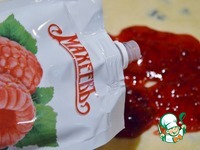 Смажьте джемом Махеевъ, не доходя 2 см до краёв. Я взяла малиновый джем, Вы можете взять любой по Вашему вкусу. |