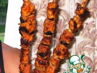 Самые верхние шампуры на фото – это как раз и они, а средние - вот по этому рецепту https://www.povarenok.ru/recipes/show/8572/ А внизу – это еще не готовые и те и другие вместе (мозаика). |