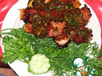 На фото соус можно увидеть по этой ссылке https://www.povarenok.ru/recipes/show/8580/ Или вприкуску с таким маринованным луком https://www.povarenok.ru/recipes/show/8577/ |