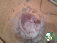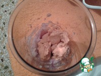 Хлеб отжать, поместить в блендер, взбивать, постепенно добавляя оливковое масло и сахар. |