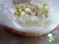Пакет с овощами и маринадом плотно закрываем, встряхиваем и убираем в холодильник на 1,5-2 часа. Периодически встряхивать. |