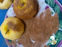Яблоки очистить от кожицы, отрезать верхушку толщиной 1.5 см (если на яблоках были черешки, не убирайте их), выньте из яблок сердцевину. Обваляйте яблоки в смеси сахара и корицы. |