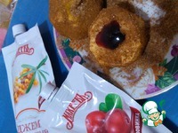 Внутренность заполните джемом ТМ "Мистралъ". Я использовала облепиховый и клюквенный. Закройте яблоки крышками-верхушками. |