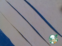 Слоеное дрожжевое тесто тонко раскатать и нарезать полосками 1- 1.5 см. |