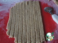 Меньшую часть раскатать потоньше и нарезать на полоски. |