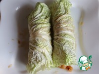 При подаче нарезать голубцы по диагонали на удобные кусочки и полить кунжутным соусом |