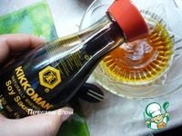 Пока основные ингредиенты обжариваются, делаем будущую подливу: Соевый соус смешиваем с водой |